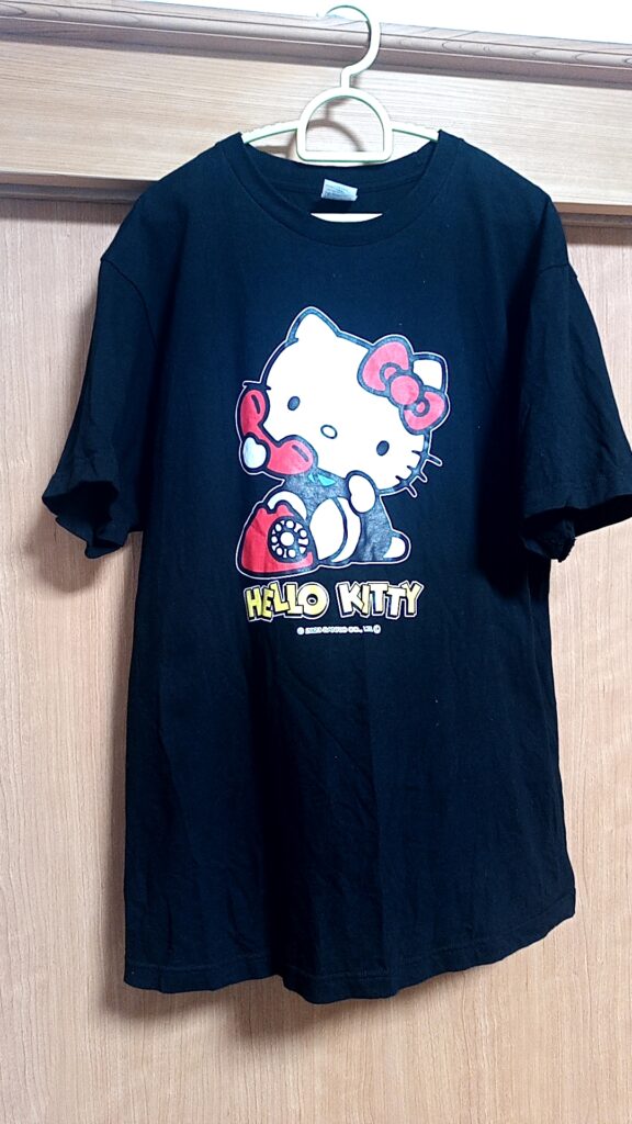 お土産に買ったキティちゃんTシャツ。今年のマラソン練習のお供に。