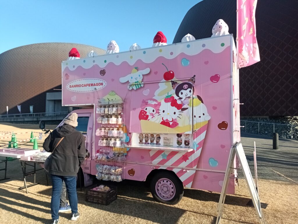 朝9時に到着すると、すでにサンリオカフェワゴンがスタンバイ中。開店前からワクワク。
